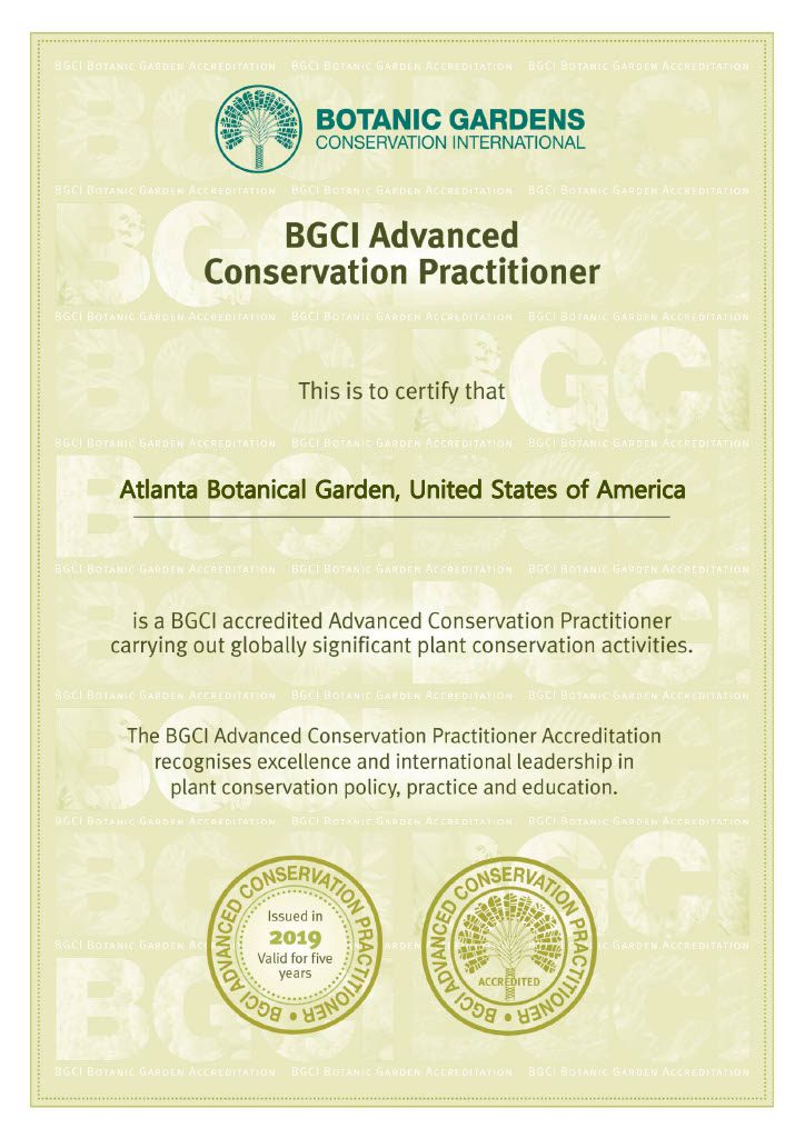 The Atlanta Botanical Garden works in partnership to conserve imperiled plants and natural communities. Its multi-faceted approach blends rigorous field-based plant rescue and habitat rehabilitation with state-of-the-art molecular research, integrating the work of natural resource managers, student interns, and citizen-scientists into native plant conservation across the Southeast.